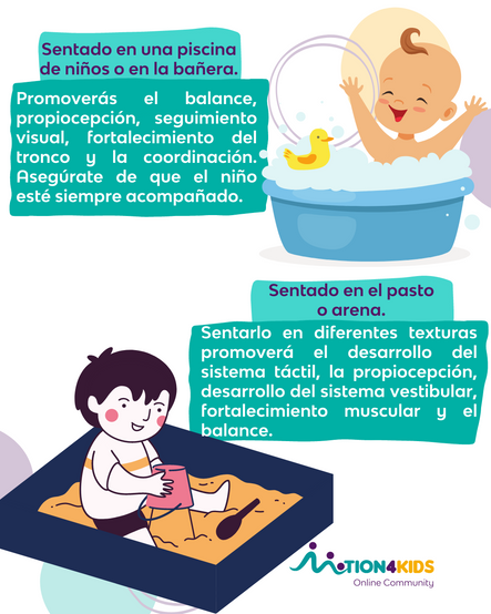 Sentarse es una habilidad motora muy importante que promueve el equilibrio del cuerpo contra la gravedad, facilita el control del tronco, del cuello y la cabeza, mejora la conciencia corporal, el seguimiento y contacto visual.
